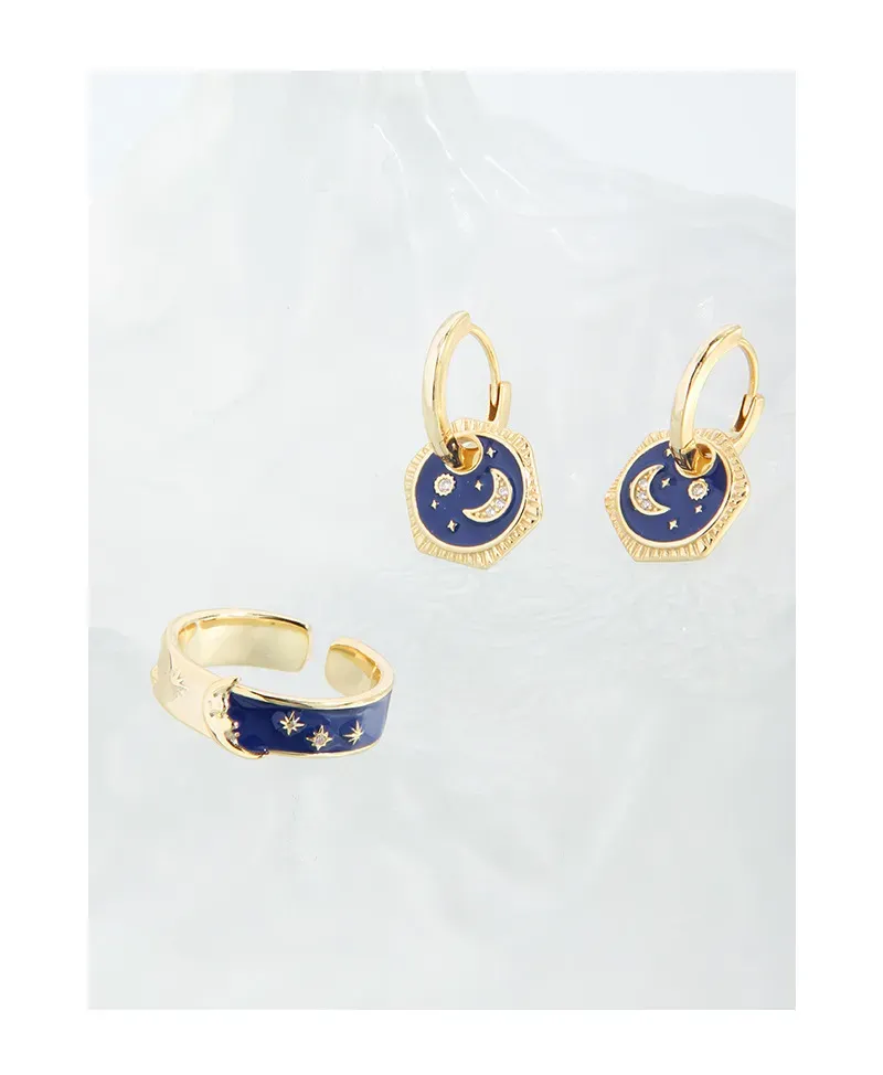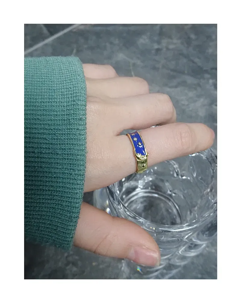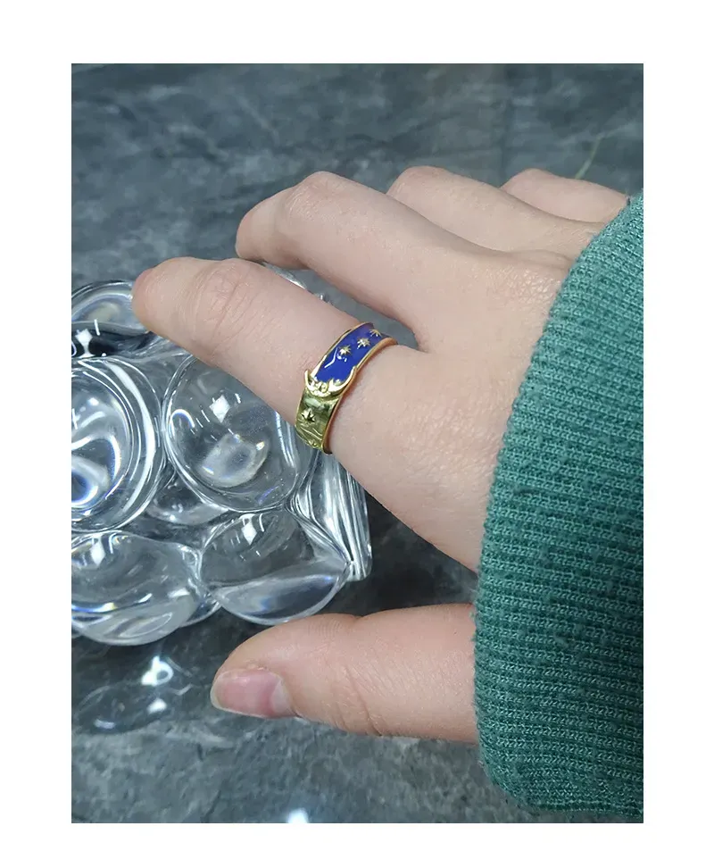 - Patterns & Textures: One half of the band showcases intricate embossed stars, reminiscent of distant constellations. The other half glows with rich blue enamel, adorned with delicate gold-toned stars. A beautifully sculpted crescent moon, intricately detailed, bridges these two celestial scenes, capturing the essence of both earth and sky.