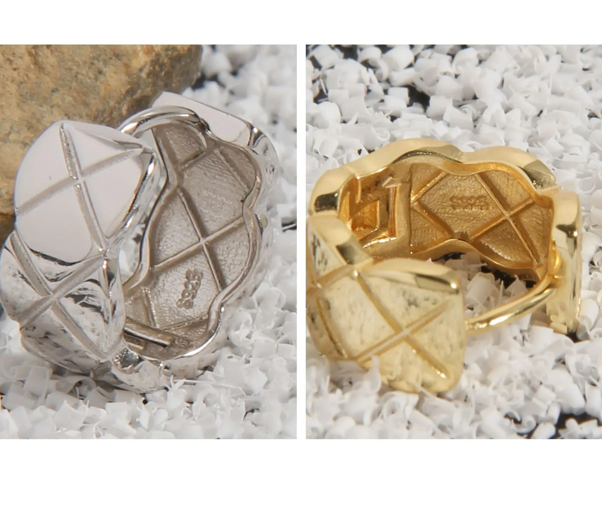 • Patterns & Textures: Adorned with a distinctive quilted, diamond-grid pattern, the surface boasts a rich, sculpted texture. This intricate detail, reminiscent of timeless natural patterns and the mysteries of the night sky, adds depth and allure to the radiant gold.