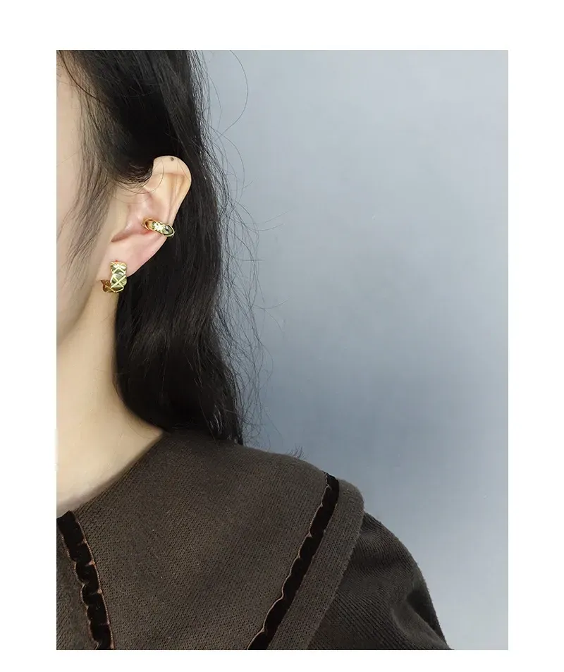 Golden Quilted Huggie Hoop Earrings