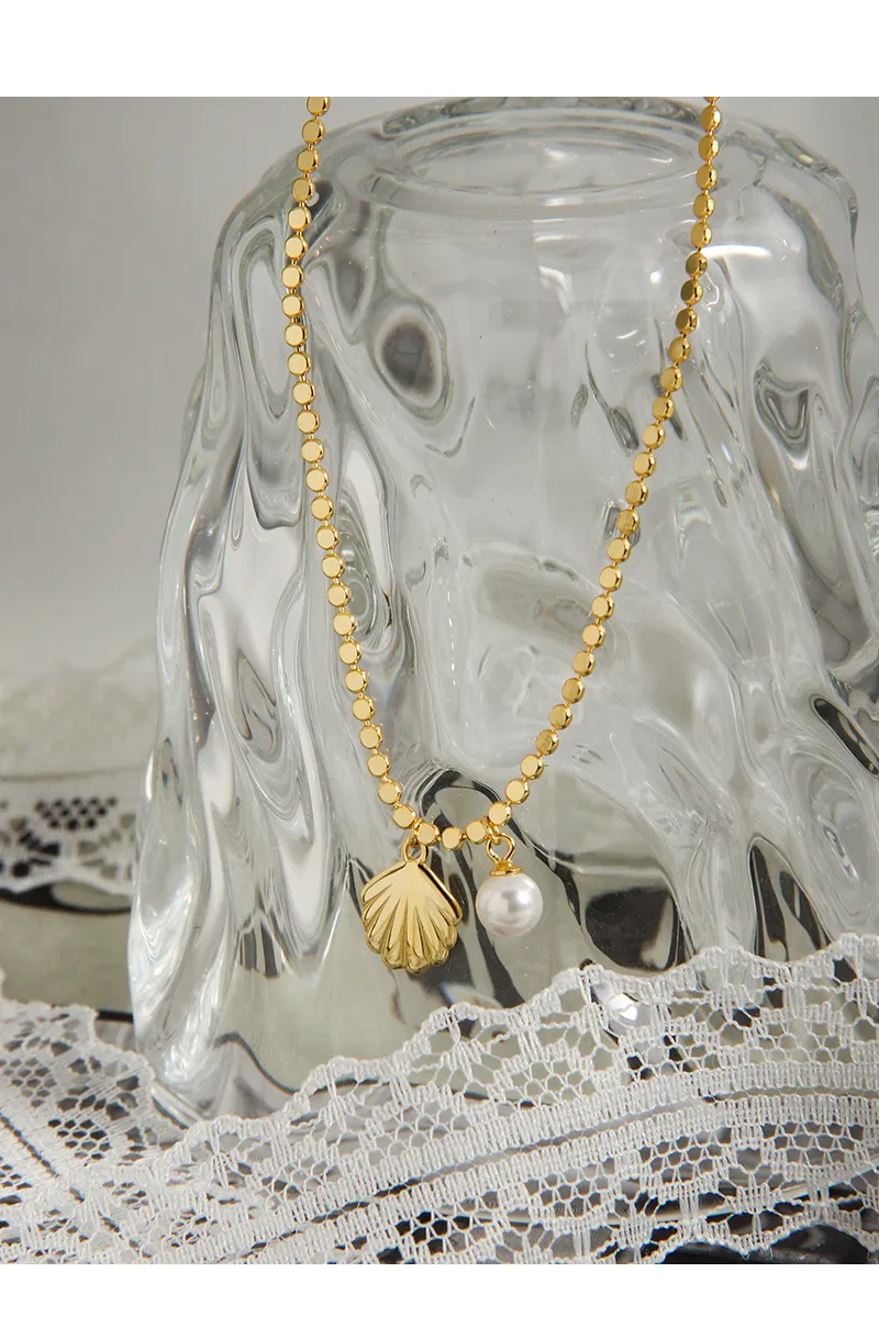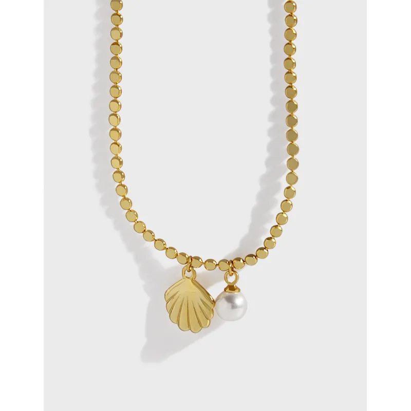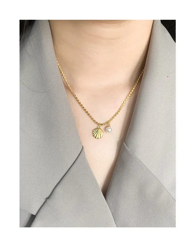 • Color: The necklace features a radiant golden hue throughout its chain and charming shell pendant, beautifully complemented by the luminous, creamy white of the freshwater pearl.