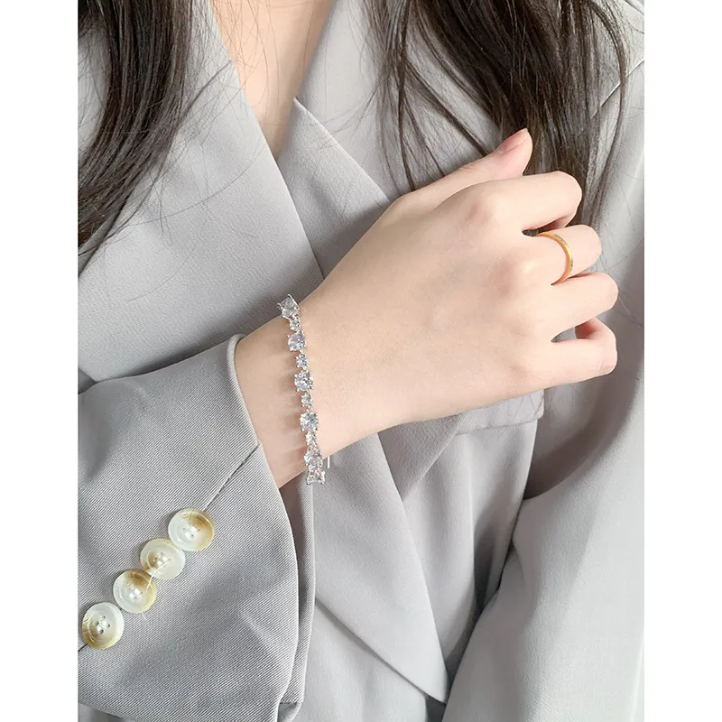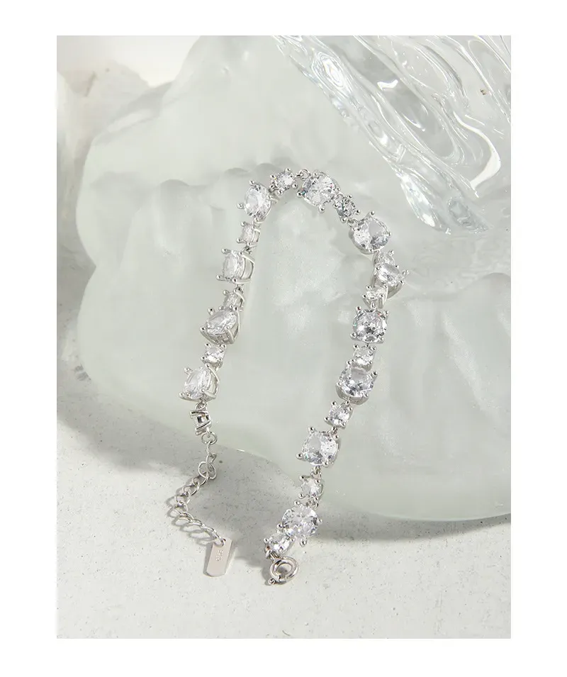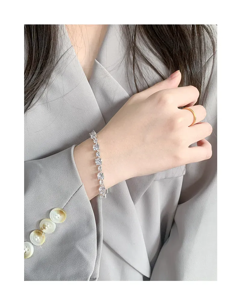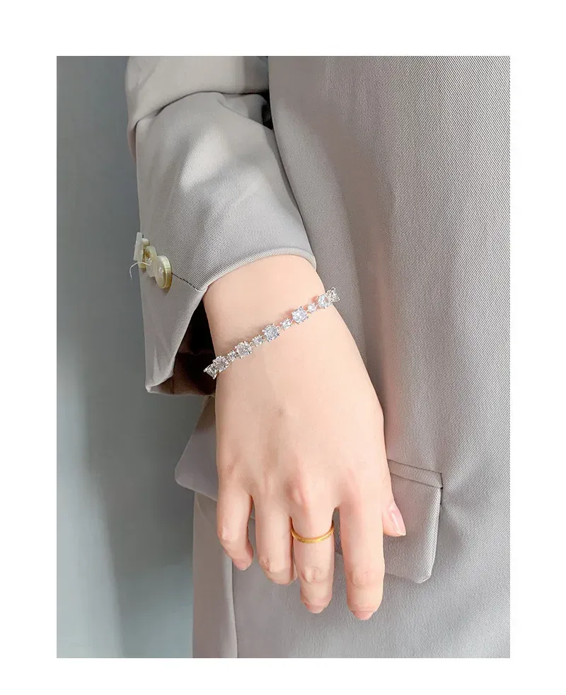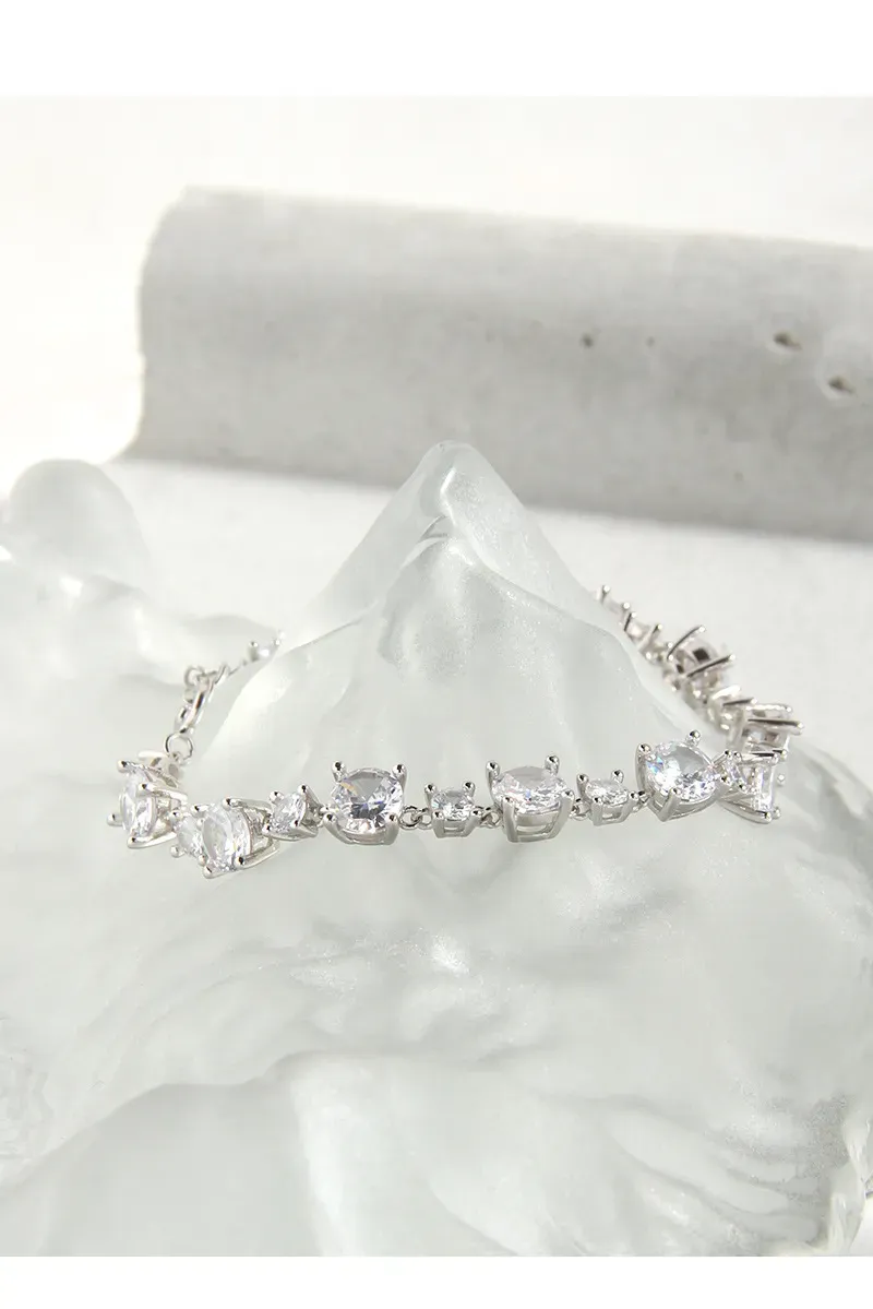 • Color: The Zelithra Bracelet showcases a radiant silver tone, perfectly complementing the dazzling clarity of its brilliant white stones.