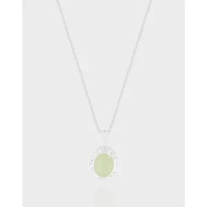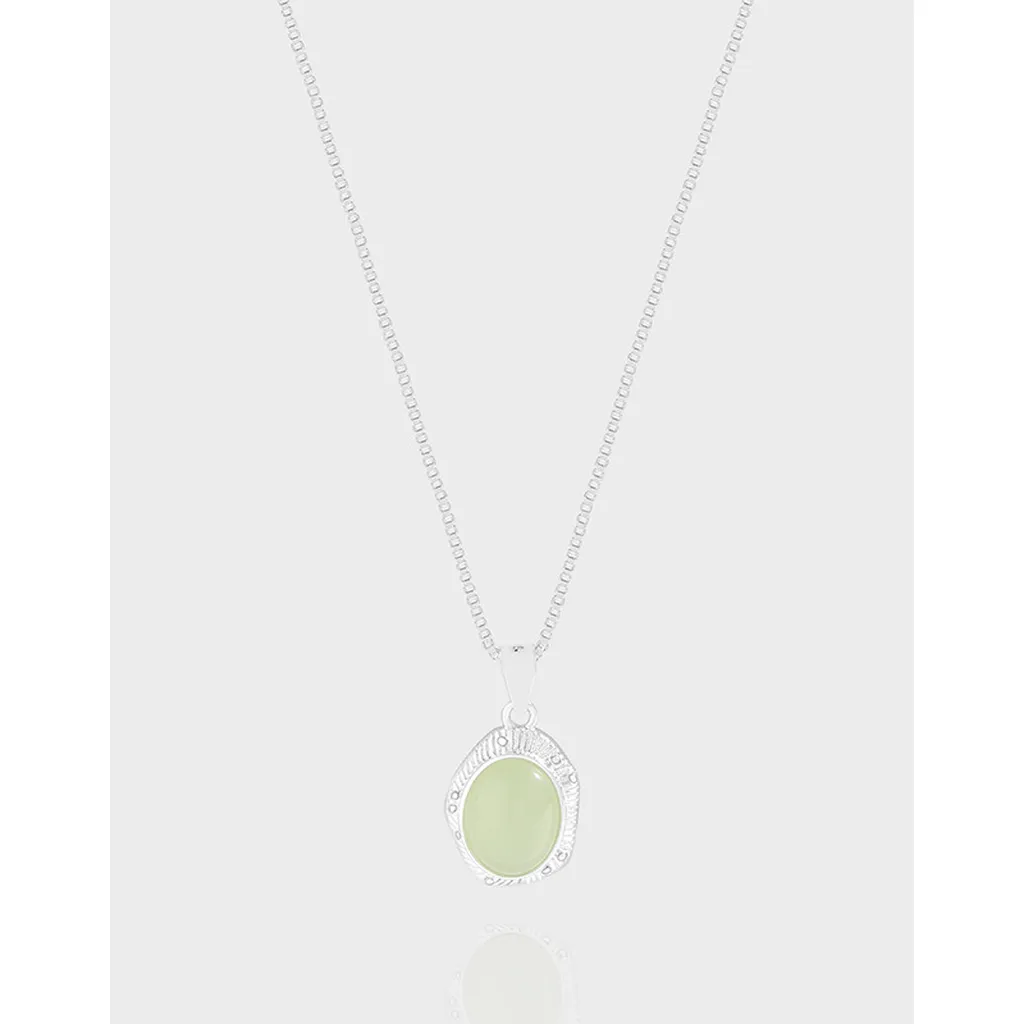 - Color: This ethereal Zelyndra Necklace features a captivating oval gemstone in a soft, pale lime green hue, reminiscent of new spring growth or distant celestial light. The gemstone is elegantly cradled within a sterling silver-toned setting, complemented by a delicate silver-toned chain.