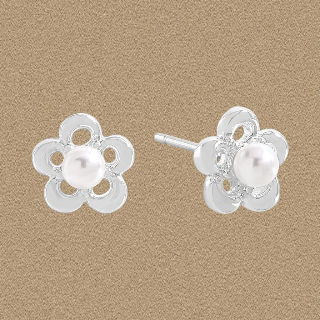Dainty Pearl Flower Stud Earrings by Malisse