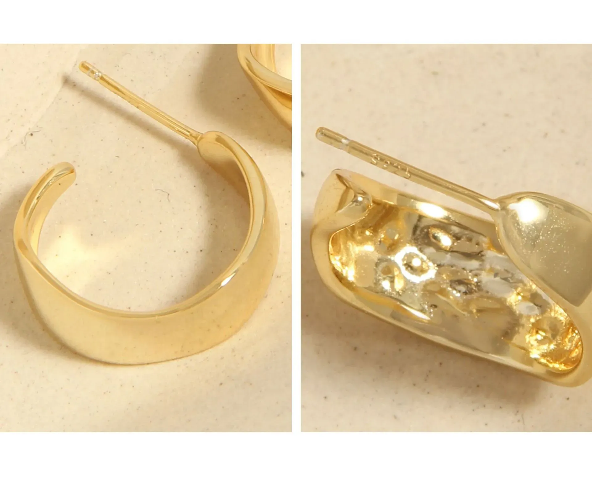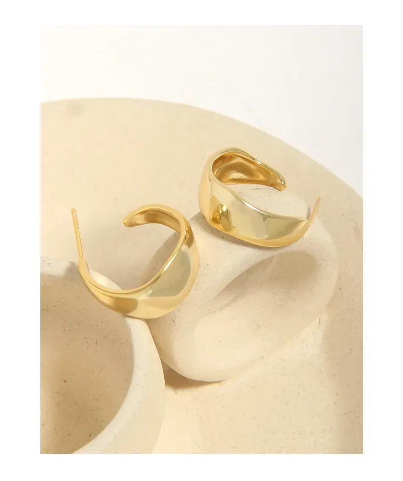 • Texture & Pattern: Each earring boasts a smooth, highly polished surface that enhances its golden luster. The unique, undulating wave-like shape provides an intriguing, subtly imperfect texture, mirroring the ever-changing brilliance and raw beauty found in nature’s patterns.