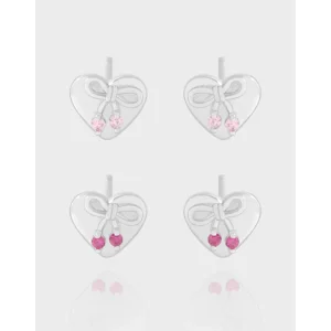 Patterns & Textures: The smooth, reflective surface of the silver heart and its stud post offers a sleek, modern feel. The intricate bow detail features subtle, etched lines that mimic the organic folds of a ribbon, adding a hint of delicate texture. The brilliant cut of the gemstones ensures a sparkling finish, embodying the depth and artistry inspired by natural elements and the shimmer of the night sky.