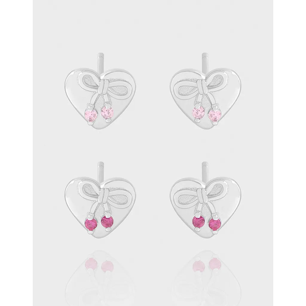 Elegant Heart Bow Stud Earrings with Pink Gems