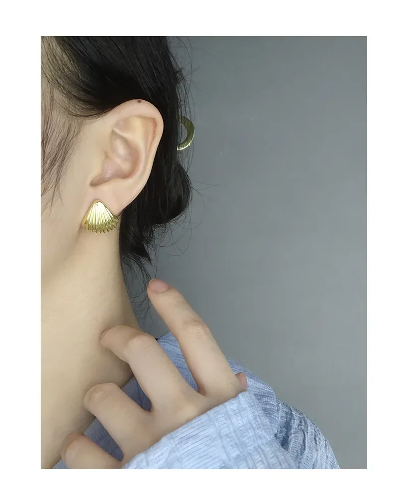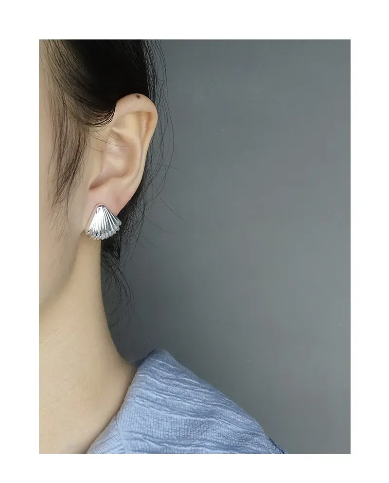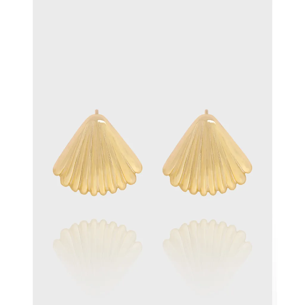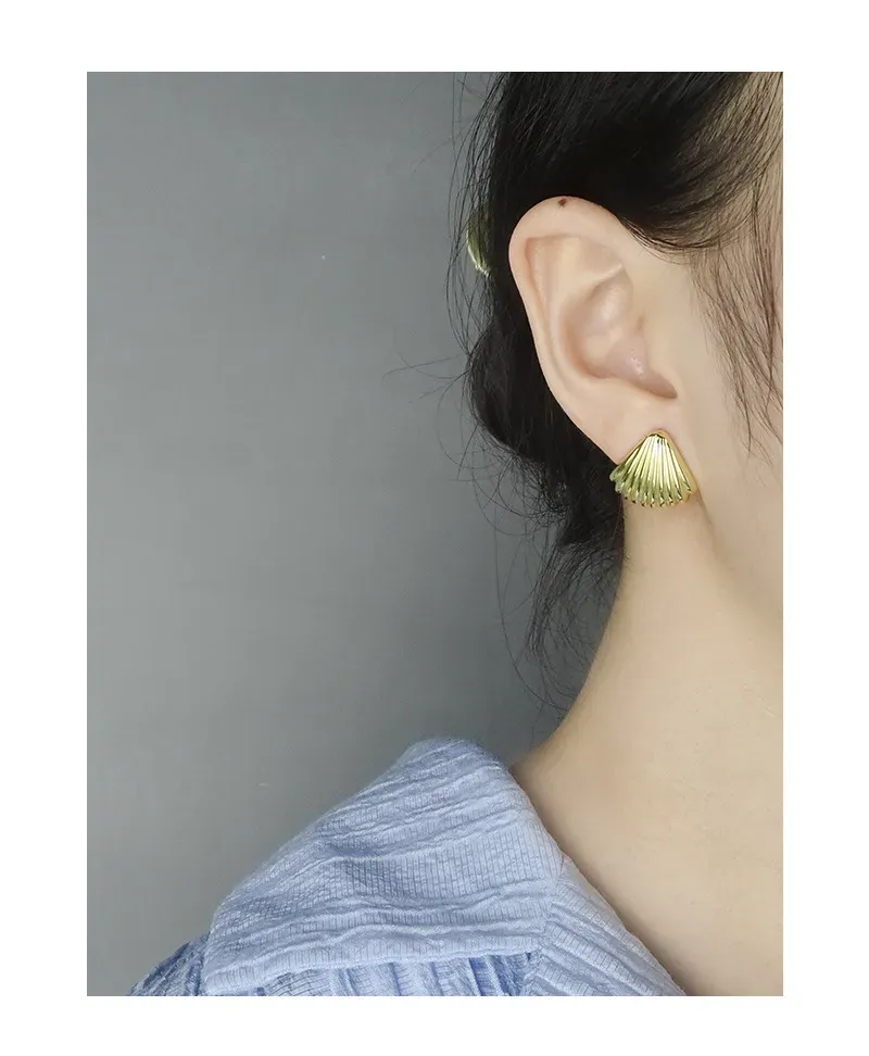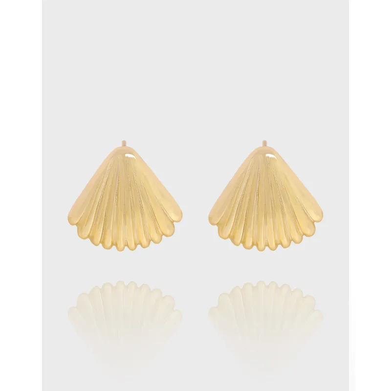 • Style: Elegant stud earrings, designed with a distinctive, nature-inspired fan or shell silhouette that sits beautifully on the ear.