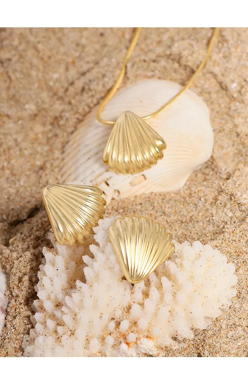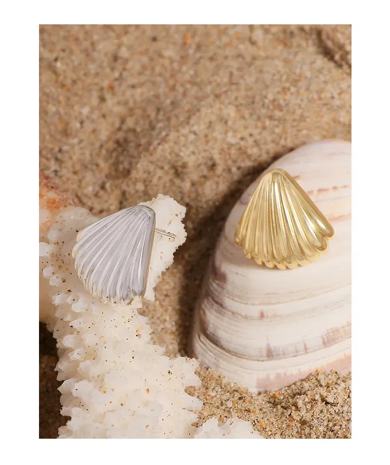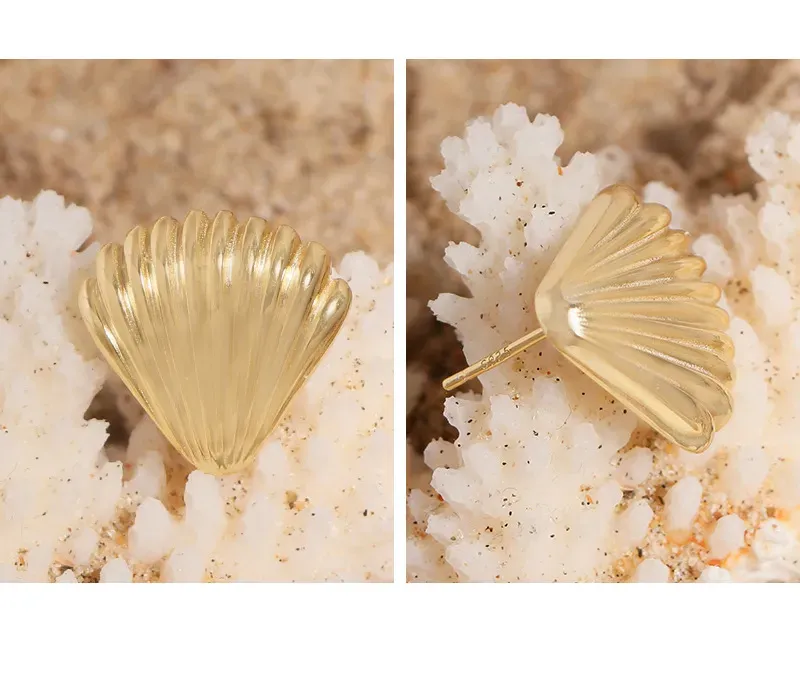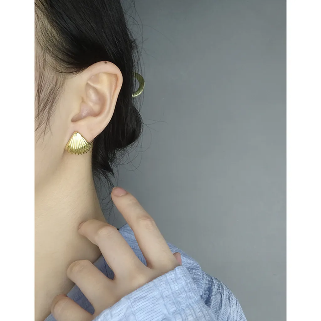 • Style: Elegant stud earrings, designed with a distinctive, nature-inspired fan or shell silhouette that sits beautifully on the ear.